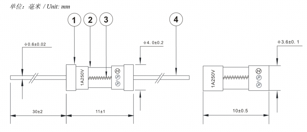 3.6*10的1A玻璃管保險絲的制作材料明細以下詳細說明:管體為玻璃管,銅帽為黃銅鍍鎳,而玻璃管里面的熔絲主要由合金制成,玻璃管引線主要由鍍錫銅線制成。