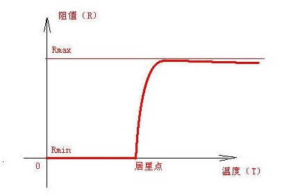 PTC熱敏電阻是一種典型具有溫度敏感性的電阻元器件,其內部的溫度超過一定的值(居里溫度)時, 它的電阻值隨著溫度的升高呈階躍性的增高。典型的RT(阻值溫度)曲線如圖所示: